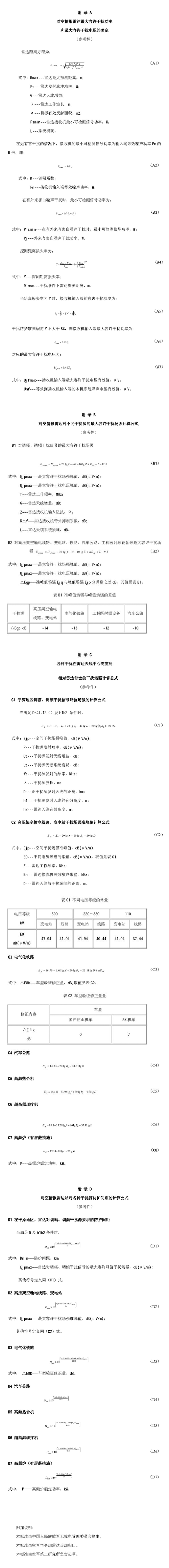 注:a.特殊情況下,按干擾防護準則的要求,參照有關(guān)附錄進行測算。